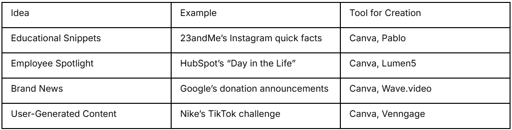 Your current customers are excellent marketers! Having real people talking about how they use your products and services brings trust and relatability to the content. Think of testimonials, transformation stories, or reviews coming from user-generated content in the form of videos or images.