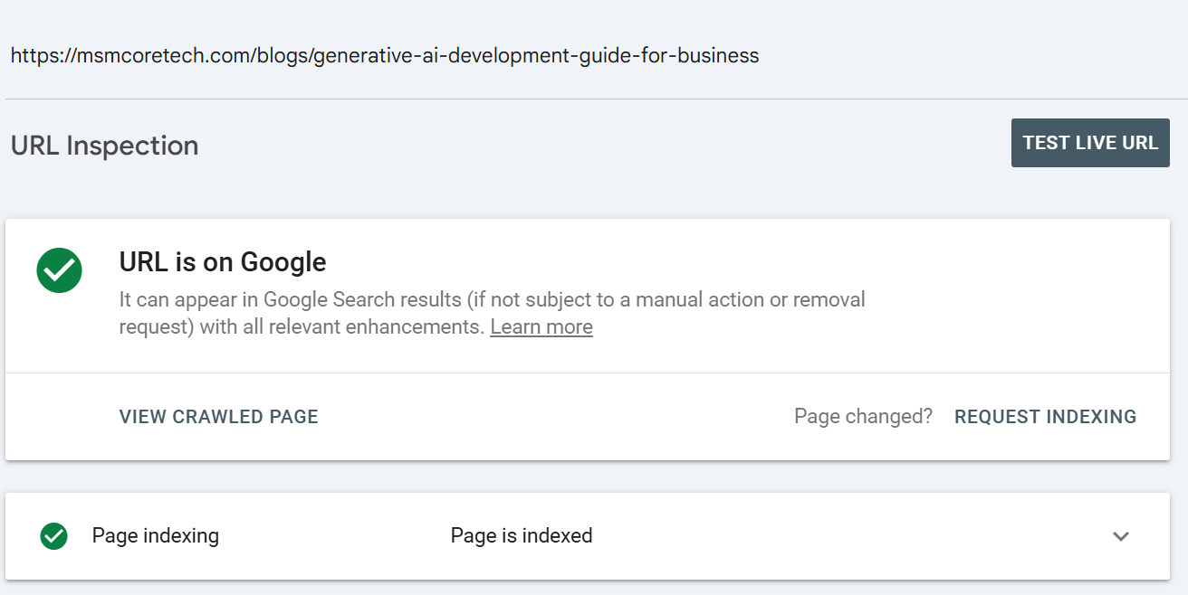 - Use the “URL Inspection” tool (in Google Search Console) to see if key pages are indexed and when they were last crawled.
